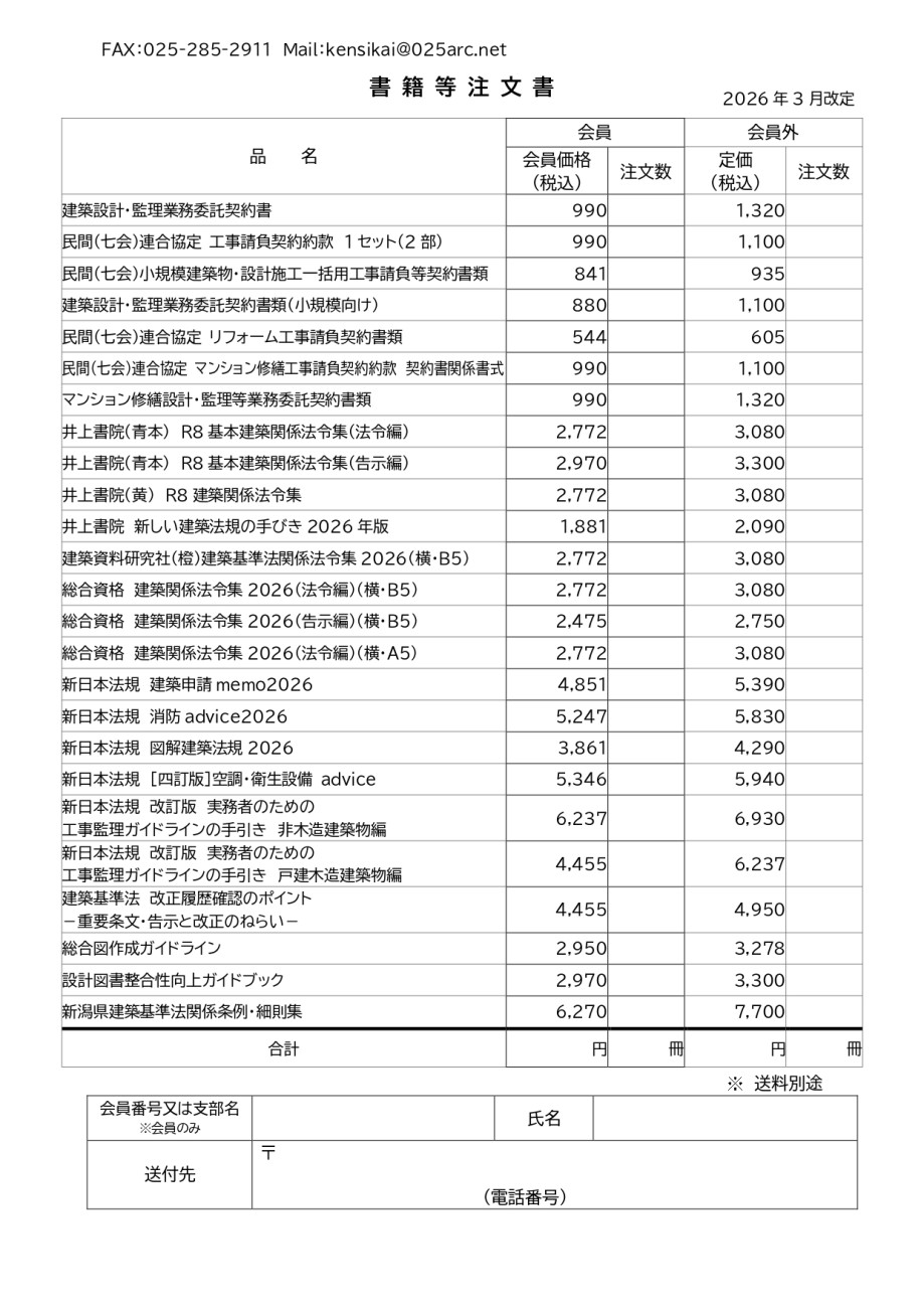 > 建築士のみなさまへ > 書籍等の販売