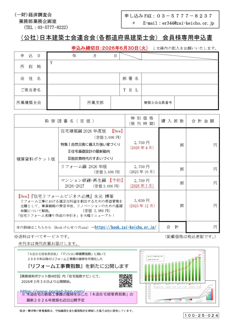 (一財)経済調査会が毎年発行している積算資料ポケット版について、建築士会会員様については